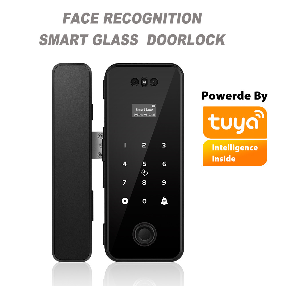 Il des applys à la porte en verre, la serrure de porte intelligente soutient ouvrir la méthode comprenant le visage, empreinte digitale, mot de passe, carte, appli, clé ;
